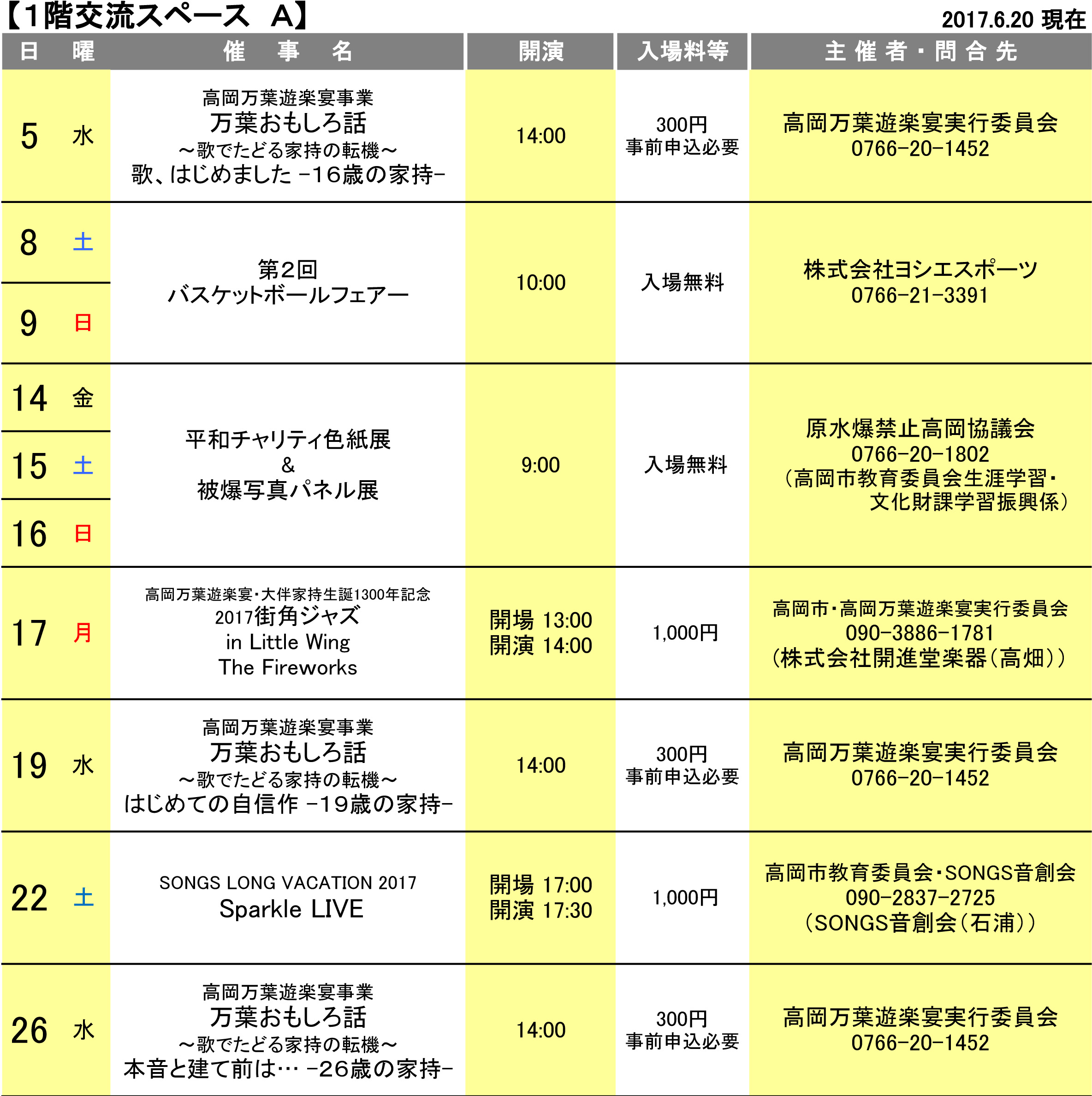 1階交流スペース・広場公園…平成29年6月の催し物カレンダー