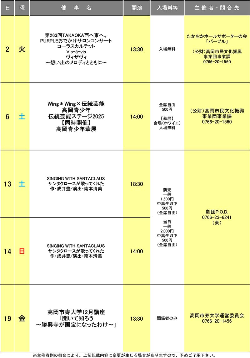 休館日のお知らせ…令和7年12月22日(第4月曜日)