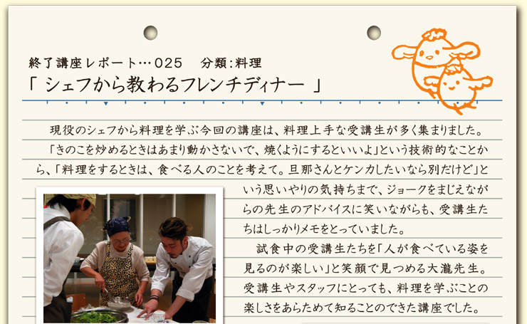 終了講座レポート…レポート025「シェフから教わるフレンチディナー」(平成19年)